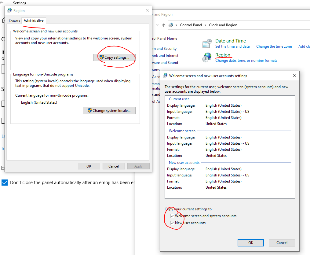 This solution that apparently helps is: After setting the hotkeys, go to Region > Administrative > Copy Settings... > check all.