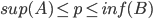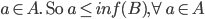 Therefore, inf(B) is an upper bound for A. Thus, .
