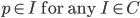 (More simply, there exists a number p, so that p is in I, for any I in C)